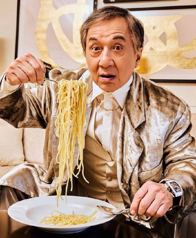 А помните, в 2018 году в Китае был ужасный скандал из-за рекламы D&G? Тогда из-за ролика, в котором модель-китаянка палочками пыталась есть итальянские специалитеты, был отменен грандиозный показ бренда в Шанхае, маркетплейсы убрали их товары, а бутики в Китае едва не закрылись? Кстати, именно тогда Доменико и Стеффано впервые применили «извинительные водолазки» (помогло, но не сразу). И вот семь лет спустя народный любимец и символ нации Джеки Чан наносит ответный удар по пасте. Актер ест ее с помощью вилки и ложки, что как бы не высокий стиль (правильно просто вилкой). Правда, Героиня подозревает, что итальянцы в ответ обижаться не станут 🕊️