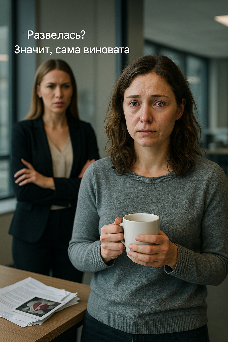 — Развелась? Значит, сама виновата, — бросила Оксана, отпивая кофе у кулера.