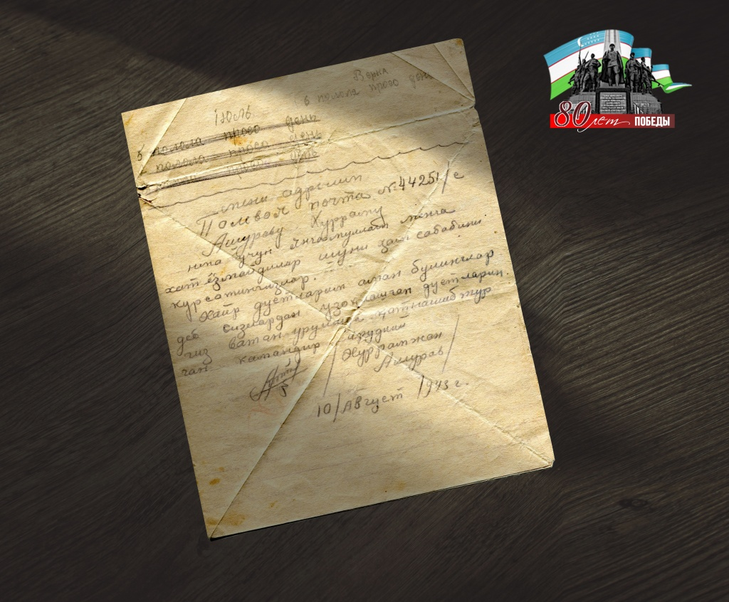 Узбекистан, Ташкент – АН Podrobno.uz. Письмо-треугольник, не дошедшее до адресата, спустя десятилетия вернулось в семью Ашуровых, и стало частью живой памяти о фронтовике Хурраме Ашурове. Эта история не только о судьбе одного письма, но и о стойкости, верности и памяти, которую бережно хранят поколения. Письмо из прошлого Как-то, осматривая экспонаты Музея истории Узбекистана, Мумин Хуррамович увидел в витрине письмо-треугольник Ашурова Хуррама, своего отца. Адрес на треугольнике был знакомый, домашний, самаркандский. По какой-то причине письмо не дошло до дома, и вот теперь, спустя десятилетия после войны, сын ветерана впервые прочитал строки, написанные отцом. Письмо датировано 10 августа 1943 года, отправлено из Харьковской области, из одного из сельских населенных пунктов. Это письмо адресовано двоюродному брату по имени Раббим, которому тогда было 15 лет. "… внимательно перечитал письмо и обратил внимание на следующее: оно написано 10 августа 1943 года в ответ на письмо двоюродно