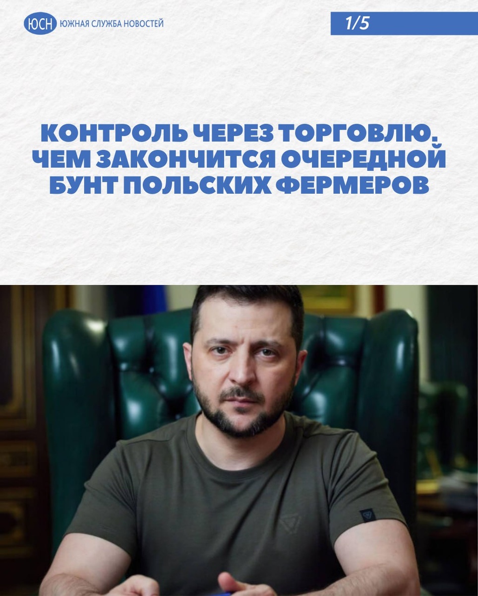 🔹 Контроль через торговлю. Чем закончится очередной бунт польских фермеров Для украинского зерна европейский рынок закрывается. Пошлины на сельхозпродукцию из Украины начнут действовать шестого июня. Беспошлинная торговля, введенная в 2022 года «в знак поддержки», отменяется. Об этом пишет Financial Times. Польские фермеры опасаются конкуренции и давно бунтуют — их продукция проигрывает дешевому украинскому зерну. 🌐 Южная служба новостей