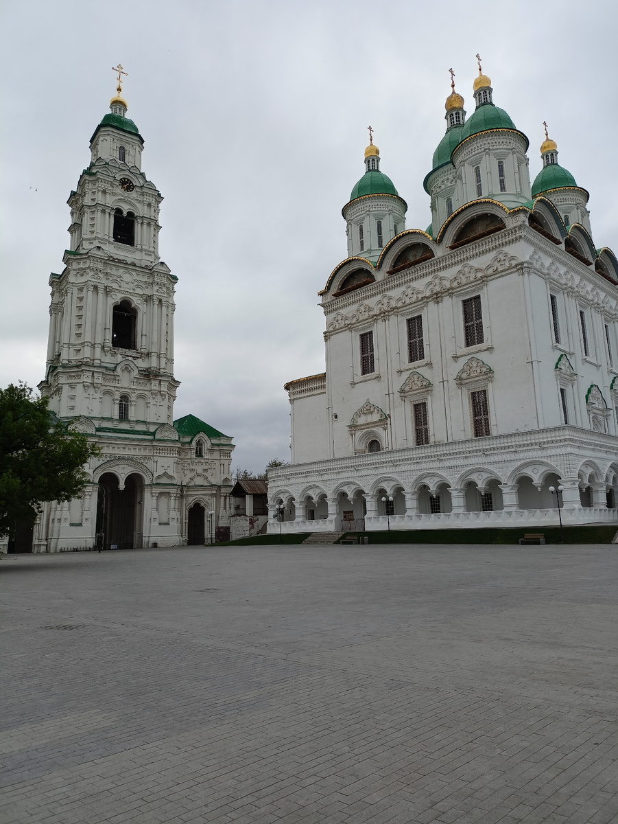 Начинает светать, за окном видна привокзальная площадь и торговые центры. Решаю пойти погулять, размять ноги. До встречи с группой еще много времени и его нужно как-то провести. Выйдя на улицу, оглядевшись и сверившись с яндекс картами, решаю прогуляться до кремля. Вернее я вначале просто пошла вперед, перпендикулярно вокзалу, а уже потом обнаружила, что тут можно всего за сорок минут дойти до кремля. Сначала я шла прямо, вау какой красивое здание современной постройки –это театр оперы и балета, который меня очень и очень впечатлил. Затем я повернула налево. А вот и мост влюбленных, а там виднеется бывшая рыбная биржа, а ныне ЗАГС, одна из визитных карточек Астрахани. Да, это центр города, и я по нему гулю. Здания не выше двух этажей, старые с историей. Тут свой колорит, он отличается от колорита Москвы и Нижнего Новгорода, не говоря уже о других городах. Тут чувствуется то как люди жили раньше, что их волновало, что их заботило. Вот я дохожу до кремля. Кремль не такой основательный как Московский или Нижегородский. Он белый, приземистый. На территории кремля много храмов. А вот храмы впечатляют своей мощью и величием. Белые строения храмов меня очень впечатлили. Однозначно стоит посетить Астрахань, хотя бы для знакомства с архитектурой белоснежных храмовых строений. Еще у меня создается впечатление, что почти вся территория кремля застроена церковными строениями, и все постройки расположены максимально близко друг к другу, нет такого размаха и простора как у Нижегородского кремля.