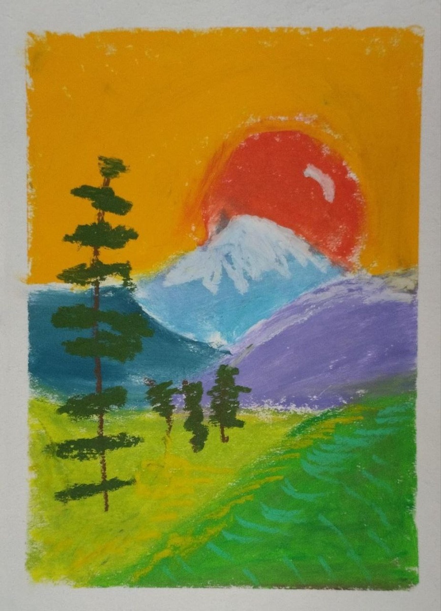 Горный пейзаж. Масляная пастель. Алисия, 5 лет