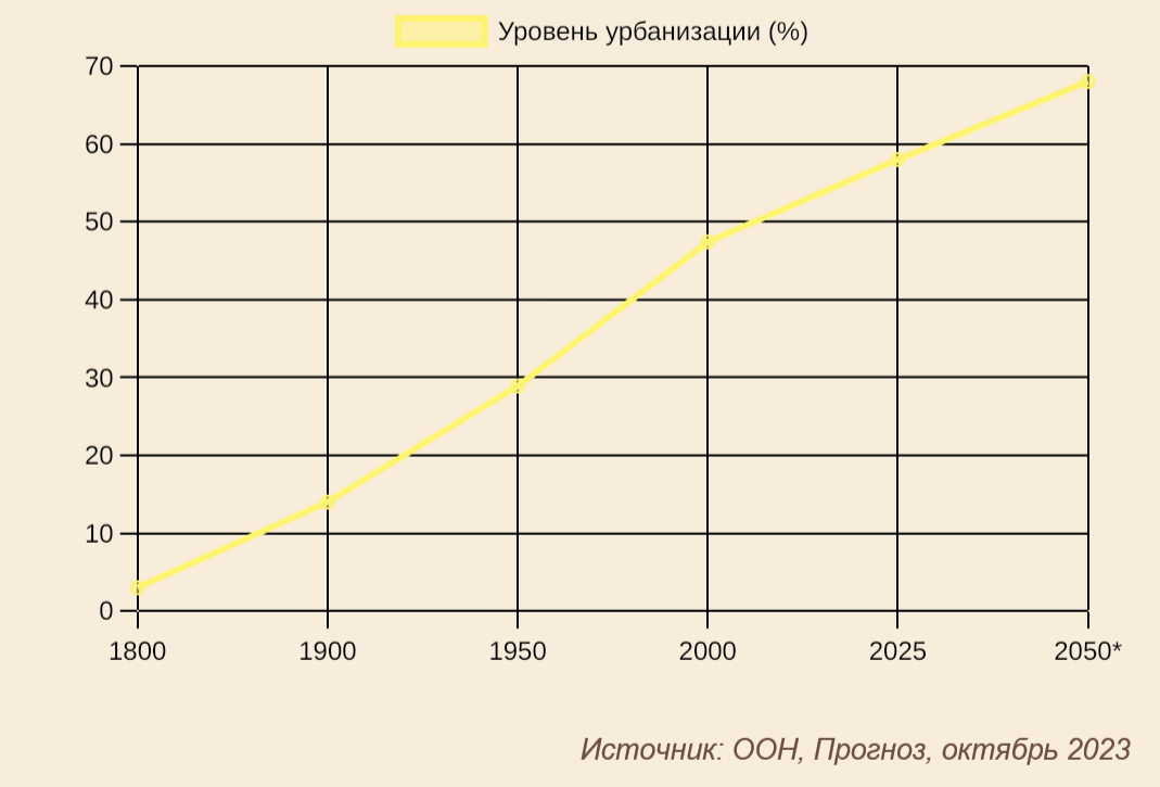 Урбанизация — один из ключевых процессов современности. По данным ООН, к 2050 году 68% населения Земли будет проживать в городах. Рост городов влияет на экономику, экологию, социальные отношения и культуру. Изучение их эволюции позволяет понять, как человечество адаптировалось к вызовам разных эпох, и спрогнозировать будущее урбанизированного мира.