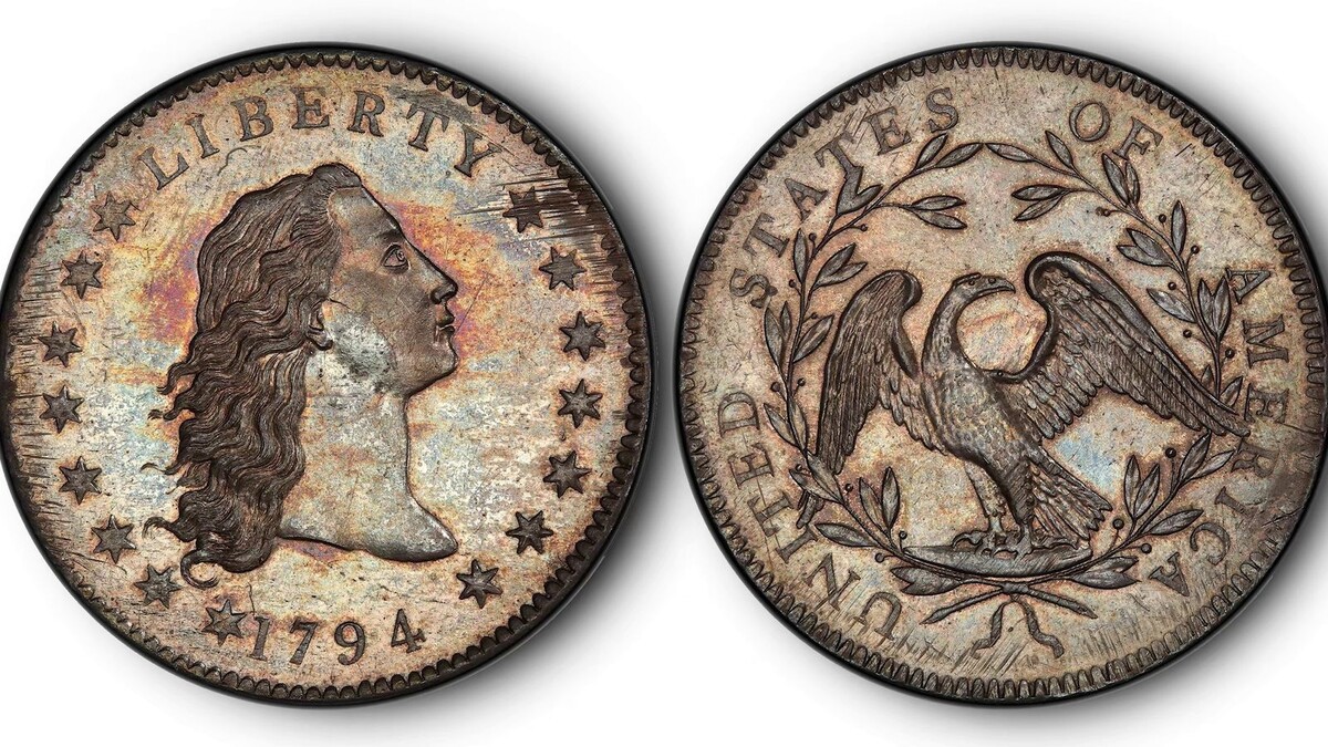 Он не блестит, как золото, и его не чеканили в огромных количествах. Но Серебряный доллар с развевающимися волосами тысяча семьсо́т девяносто четвёртого года широко считается самой редкой и исторически важной монетой в американской нумизматике. Считается, что это первый серебряный доллар, когда—либо отчеканенный правительством СШа, и, возможно, самый первый из когда-либо отчеканенных. Известно, что сегодня сохранилось менее ста пятидесяти монет из более чем полутора тысяч.