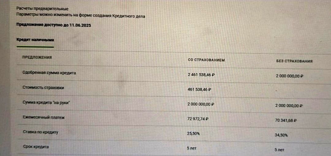В ответ на пост Продолжаю работать и получать одобрения. Кредит наличными нормально работает тема. Два одобрения сегодня. На скрине одно и вот параметры по второй заявке: 2 078 769 рублей с страховкой. Из них 1 689 000 рублей на руки Или 1 752 000 рублей без страховки. Ставка 25,5%/34,5% годовых Хотите получить кредит наличными на лучших условиях? Пишите ipotekaprosto1 И не стесняемся ставить 🔥. Мне будет приятно 😉 #Светлов #Брокер #кредиты #помощьвкредите #помощьвполучениикредита #кредитныйброкер
