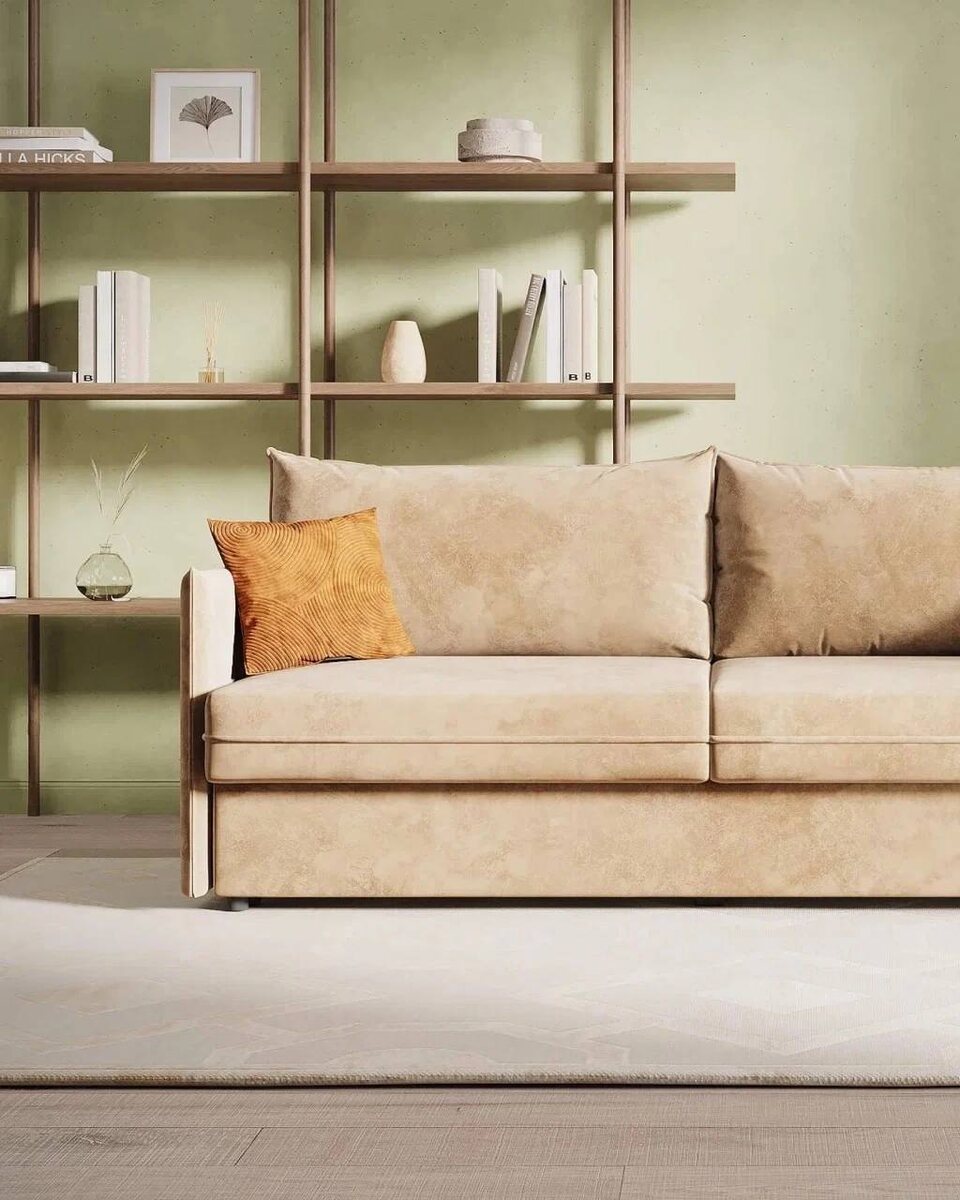 🛋️ Представляем вашему вниманию диван, который станет настоящим украшением вашего интерьера и верным спутником в повседневной жизни! 👐🏻✨ Функциональный и стильный диван идеально впишется как в просторную гостиную, так и в уютную квартиру-студию, благодаря своему лаконичному дизайну и прямым линиям. Оптимальная глубина и высота сидения обеспечивают комфорт, а механизм трансформации «пантограф» позволяет легко превращать диван в удобное спальное место 🔝 💭 Представьте себе: каждый вечер вы раскладываете диван, и у вас появляется идеальное место для отдыха. Кроме того, задняя спинка защищает стены от загрязнений и повреждений, что значительно продлевает срок службы вашей мебели. Не забывайте и о встроенном месте для хранения — это отличный способ рационально использовать каждую свободную площадь вашей квартиры! 💤 Размер спального места 150-200 см — идеальный вариант комфортного сна как для вас, так и для ваших гостей. Не упустите возможность сделать свой дом ещё более уютным и