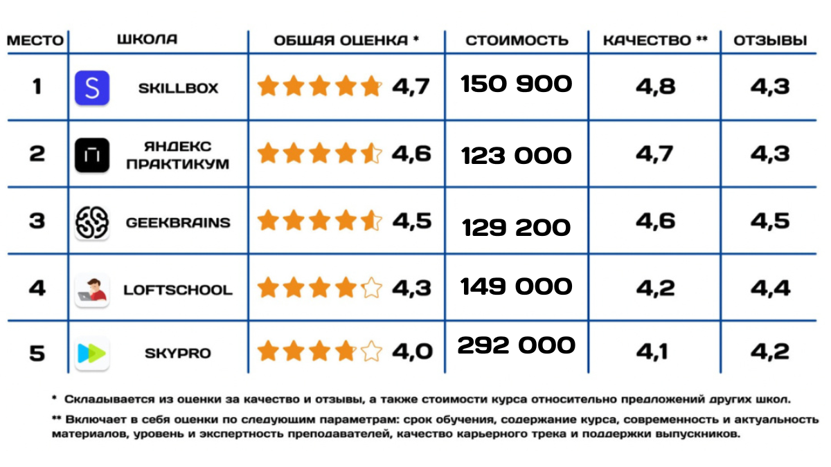 Мы – эксперты канала «Онлайн Образование» – провели масштабное исследование и изучили программы топовых онлайн-школ, прочитали сотни отзывов выпускников, оценили карьерные истории и мнения независимых специалистов.