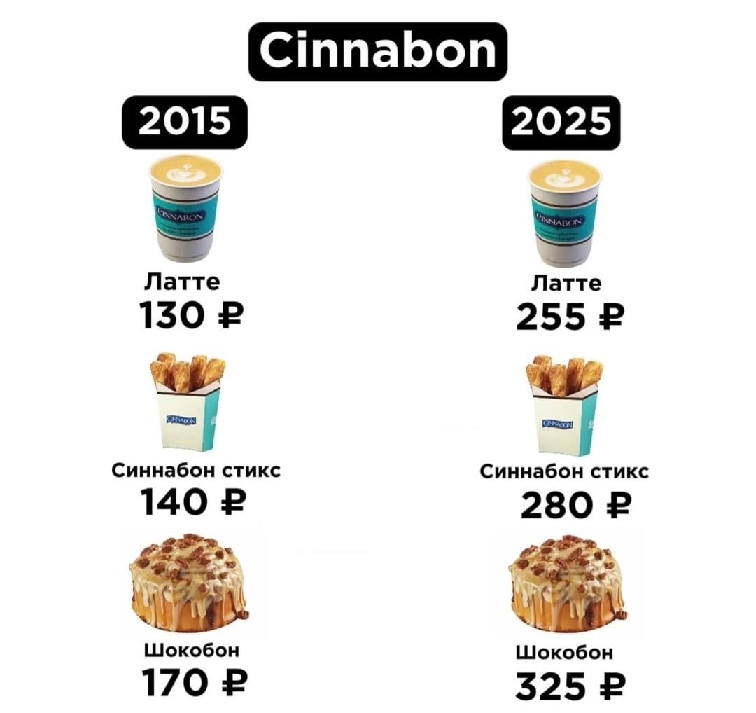 В сети показали как изменились цены в популярных российских кафе за последние 10 лет — в среднем цены выросли на 100-150% 🤬 Шарья – столица мира Крупнейшее городское СМИ Источник