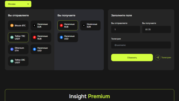 Insight – один из первых криптообменников в России, заслуживший доверие пользователей. Сервис предлагает легальные операции с прозрачными условиями. Среди преимуществ – низкие комиссии, моментальные транзакции и поддержка широкого списка криптовалют. Это отличный выбор для тех, кто ценит надежность и выгодный курс.
