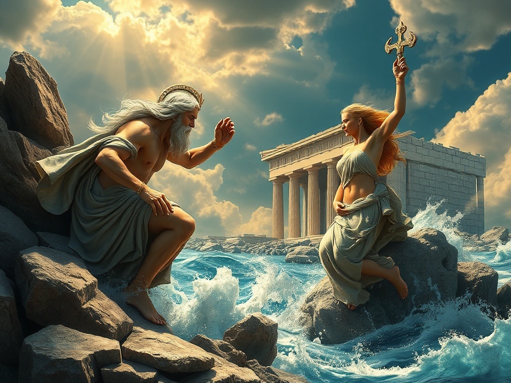 Самым известным мифом, конечно же, является спор между Посейдоном и Афиной за право покровительствовать городу, впоследствии ставшему Афинами. Посейдон, владыка морей, ударил своим трезубцем в скалу Акрополя, и из земли забил соленый источник. Афина же, богиня мудрости и войны, подарила городу оливковое дерево, символ мира и процветания. Боги выбрали дар Афины, и город получил ее имя, став центром культуры и искусства.