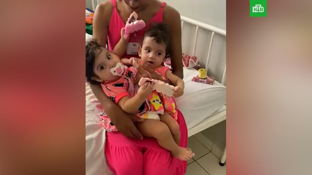 [ Смотреть видео на сайте НТВ ] Уникальная операция по разделению двух бразильских девочек, которые родились сросшимися в области груди, живота и таза, длилась 15 часов. Бразильские врачи провели уникальную операцию по разделению сиамских близнецов. Сложность заключалась в том, что у малышек, появившихся на свет в ноябре 2023-го, на двоих было три ноги и несколько общих жизненно важных органов. К тому же Кираз и Аруна родились сросшимися в области груди, живота и таза. Такой случай в медицине называется «трипус ишиопагус» и встречается примерно один раз на 2 миллиона. Девочек несколько месяцев готовили к операции — за полгода о нее рядом с областями сращения им вставили специальные импланты-расширители, чтобы кожа в этих местах растягивалась. Сама операция, в которой участвовали почти 60 медиков, прошла 10 мая и длилась 15 часов. По информации Daily Mail, посменно за операционным столом работала бригада из 16 хирургов. Врачи старались максимально быстро завершить все вмешательства, что