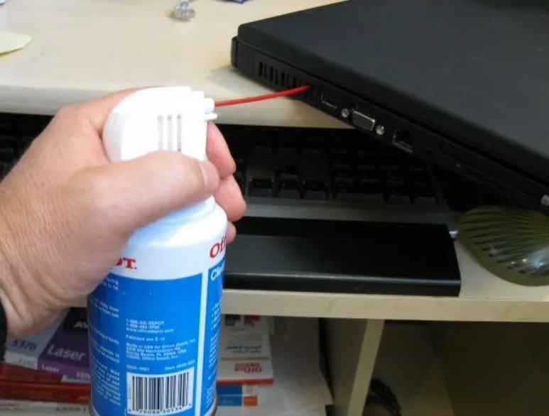 Лайфхак: держи ноут вертикально вентрешёткой вниз. Тогда рыхлая пыль падает сама, а не забивается глубже.