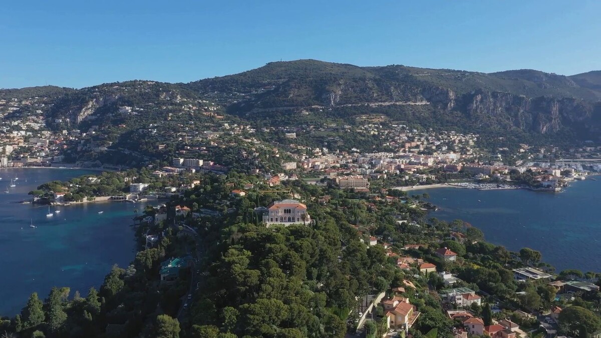 Теперь мы летим через Атлантику на Французскую ривьеру, где среди скал спрятан один из самых культовых домов в мире. Добро пожаловать на виллу Леопольда, поместье стоимостью семьсо́т пятьдеся́т миллионов долларов в Вильфранш-сюр-Мер, городе, где роскошь является основой. У этой недвижимости есть интересная история. Первоначально вилла была построена для бельгийского короля Леопольда Второго в начале два́дцатого века, а позже она принимала членов королевской семьи, знаменитостей и миллиардеров.