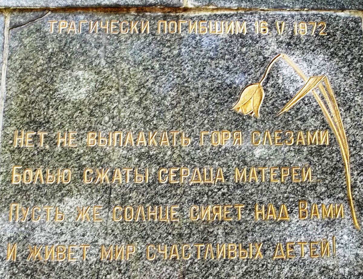 У Марии Кудрешовой там был сын, четырёхлетний Алёшка. Услышав с улицы крики – «Садик взорвался!» – она выскочила из ателье, где работала, увидела стоящий мотоцикл: «Чей?!» Прибежал хозяин, сели, помчались. А там… В разлившемся керосине горел даже асфальт… (На борту самолёта находилось восемь человек, все погибли).