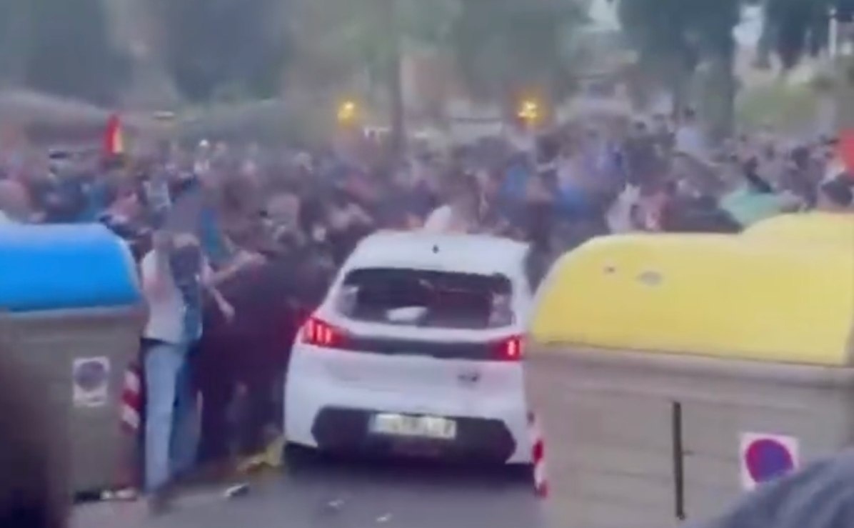 Согласно видеозаписям, распространившимся в социальных сетях, белый легковой автомобиль на высокой скорости въехал в толпу фанатов «Эспаньола»