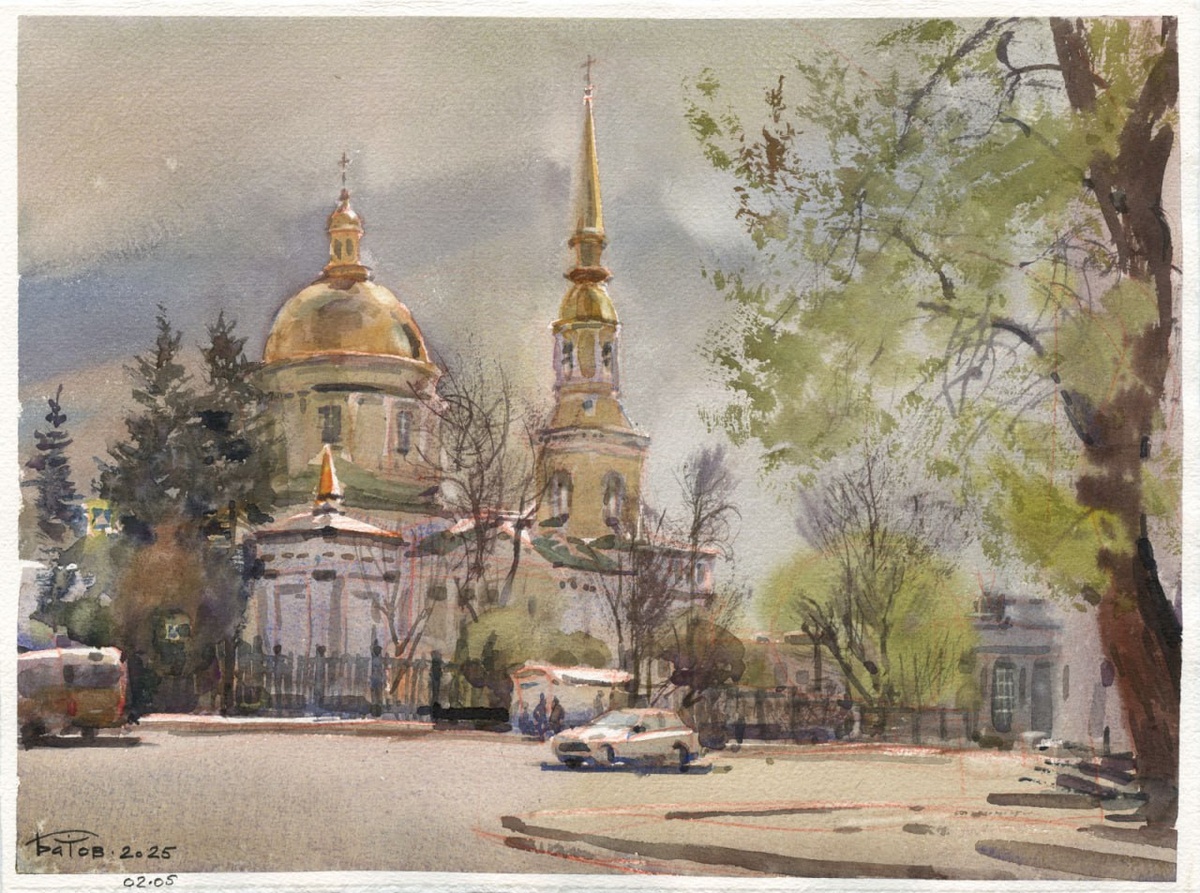 20250502 Собор Александра Невского, Ижевск / Alexander Nevsky Cathedral, Izhevsk / 28x38 / plein air watercolor.