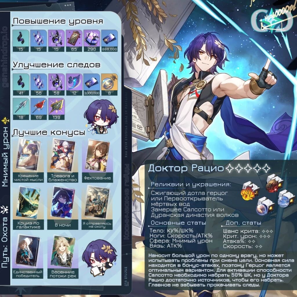 ㅤЭйдолоны Доктора Рацио нацелены на увеличение его урона и повышения комфорта геймплея. Обязательных для получения Эйдолонов у него нет, он отлично себя проявляет и без них, однако среди есть очень полезные Эйдолоны, которые сделают бои с этим персонажем приятнее.