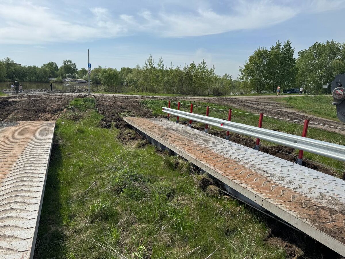 На берегу Чулыма в Ачинске собралась техника, люди. Все ждут баржу, но с ней небольшая проблема: после зимы обнаружились две течи, сейчас их заваривают.