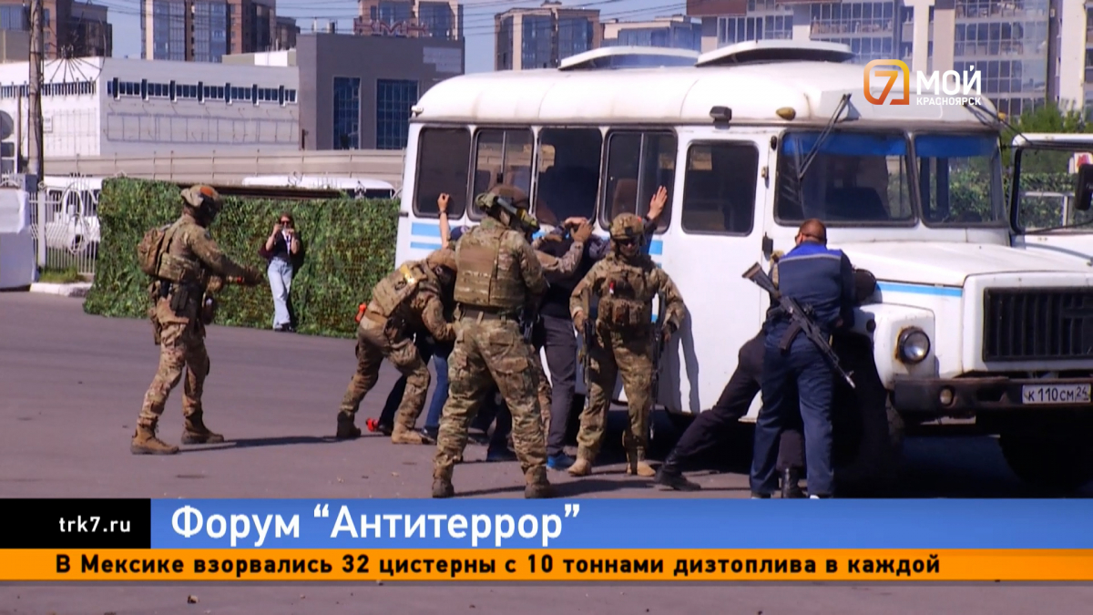 Посмотреть, как бойцы Росгвардии задерживают террористов и научится жгутом перевязывать раны. Всё это можно узнать и увидеть на форуме Антитеррор. Он сегодня начал свою работу в Красноярске. Там силовики обсуждают все актуальные методы борьбы с террористами, но и обычным зрителям есть на что посмотреть. Автобус захвачен, внутри — заложники. Бойцы Росгвардии быстро окружают ПАЗик, заходят с разных сторон, всех вытаскивают, а террористов — обезвреживают. К счастью, в реальности так работать в Красноярске не приходилось. Сейчас показательные выступления. Но работы у бойцов ежедневно хватает, совершают от 30 до 50 выездов. — Стараемся максимально быстро прибыть на те преступления и правонарушения, которые происходят на территории города Красноярска и Красноярского края. В рамках до пяти минут мы готовы прибыть на любое происшествие, — рассказал Алексей Савицкий, начальник управления вневедомственной охраны Росгвардии Красноярского края. Эта локация уже для занятий практических. Тут учат ос