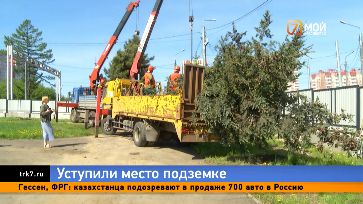 Несколько пушистых зеленых красавиц аккуратно укладывают друг на друга — они также будут соседями, но теперь уже на другой поляне. Деревья уже взрослые, все за 2 метра в высоту. Есть сосны, ели, липы, березы, рябины. И такие красивые, что действительно было бы жалко их просто вырубить даже для строительства долгожданной подземки. Чтобы уступить эту площадку метростроителям, специалисты оценили каждый ствол и всё, что можно пересадить — готовят к переезду. — Пересадчиком цепляем деревья, устанавливаем их в корзины, далее деревья ставим на воровайки и перевозим их уже непосредственно в место посадки. Далее с воровайки снимаем эти деревья, устанавливаем в заранее подготовленные лунки, закапываем и поливаем, — сообщила Ирина Жданова, и.о. заместителя генерального директора УЗС. Деревьев,