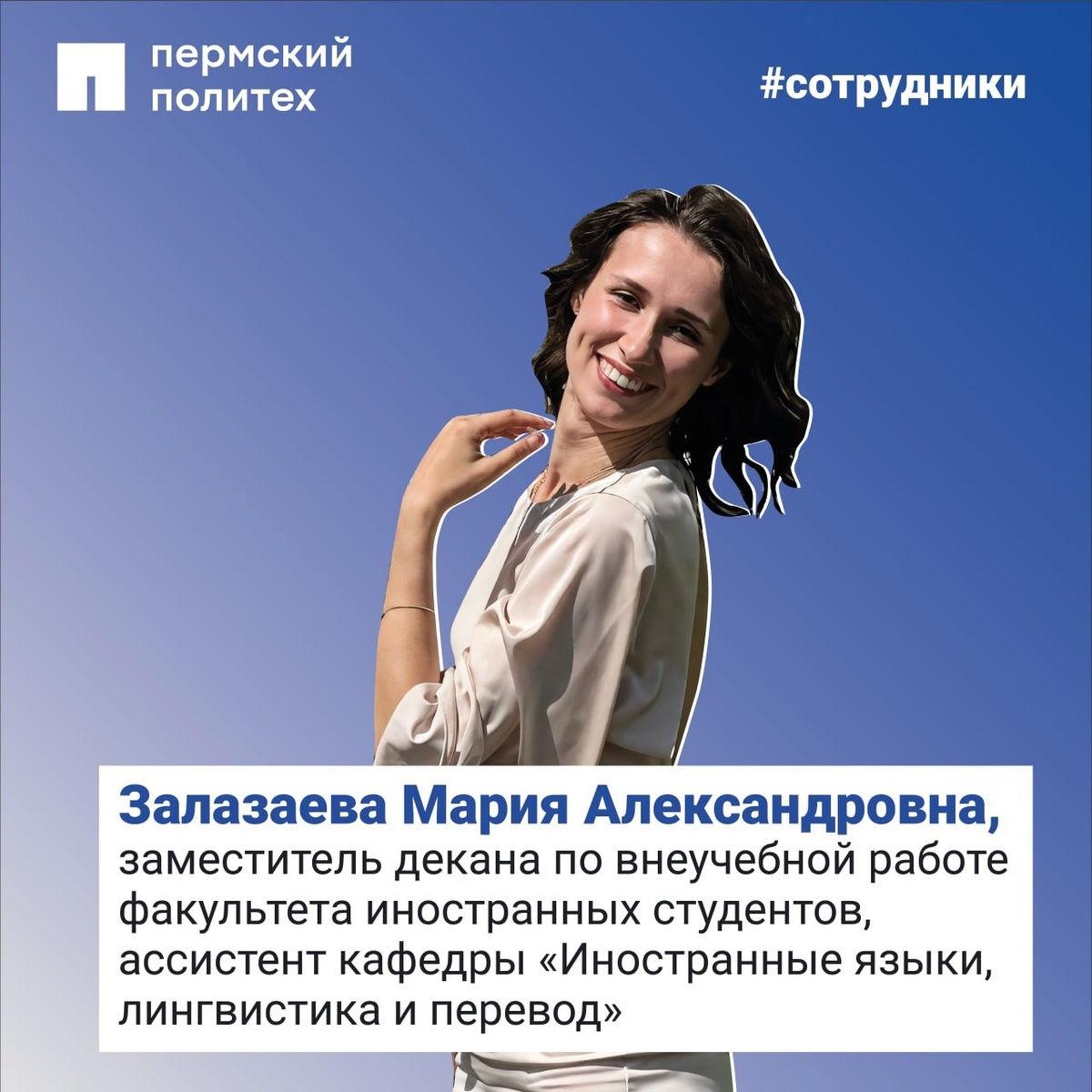 Мария Залазаева, заместитель декана по внеучебной работе факультета иностранных студентов, каждый день помогает ребятам из разных стран чувствовать себя в Пермском Политехе как дома. Но за этой важной работой стоит живая, увлеченная личность — с детскими мечтами, яркими воспоминаниями и искренней любовью к своему делу. Все подробности читайте в карточках.