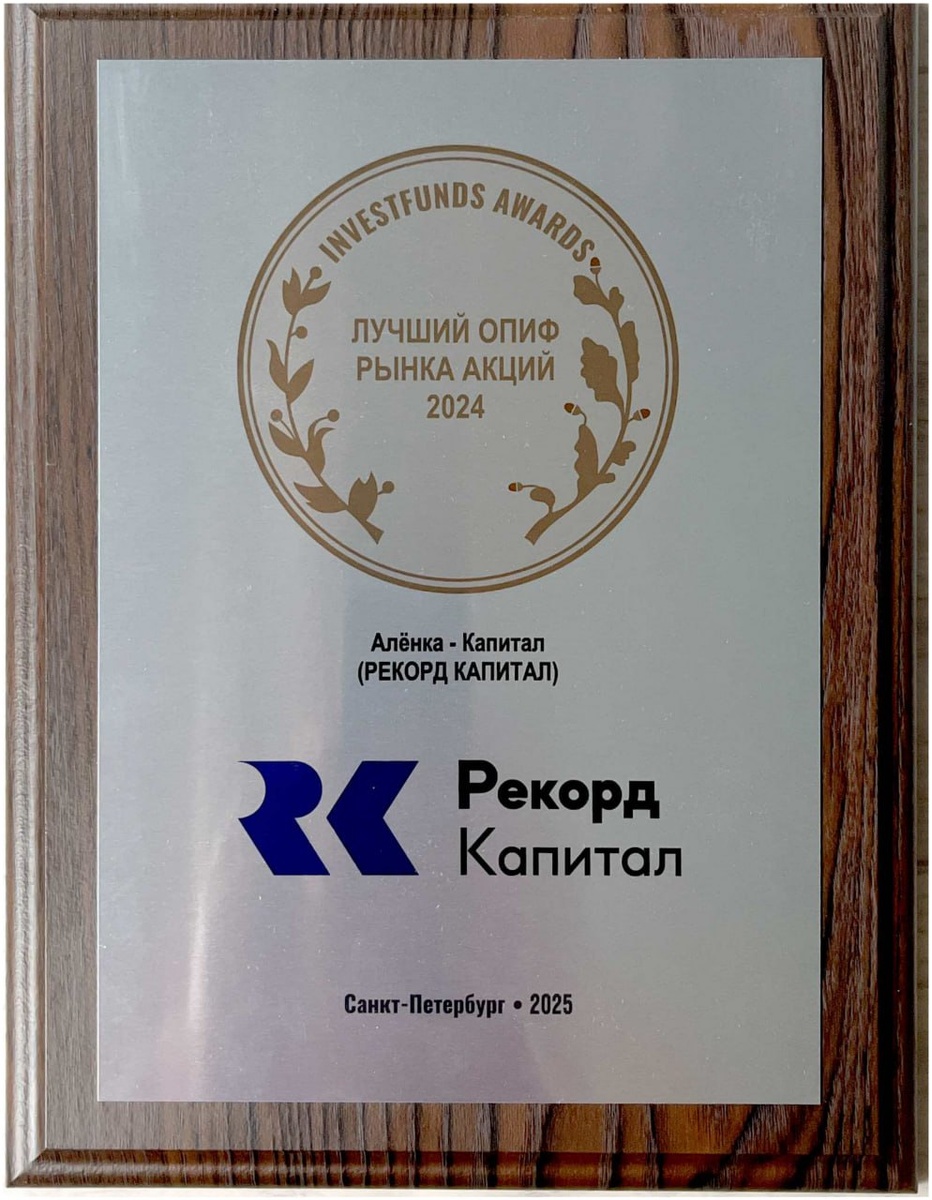 Аленка-Капитал - несомненное лидерство! В рамках премии Investfunds Awards наш фонд - ОПИФ рыночных финансовых инструментов "Аленка-Капитал" - вновь подтвердил свой статус лидера и победил в четвертый раз! 🔹 ОПИФ "Аленка-Капитал" - "Лучший ОПИФ рынка акций - 2024" - это уже четвертая престижная награда в нашей истории успеха, которая подтверждает несомненное лидерство фонда! 🥇🥇🥇🥇 Мы гордимся каждым достижением и благодарим наших инвесторов за доверие. Ваша вера и поддержка - наше главное достижение! Команда УК "Рекорд Капитал" продолжит работать с полной отдачей, достигая рекордных результатов и подтверждая свой профессионализм. Спасибо всем, кто с нами на этом пути! Впереди новые вершины и победы! #новостикомпании_rc