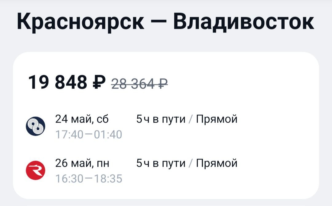 Владивосток! Вылеты из Красноярска в выходные. Обратно всю следующую неделю выдаются 19800₽ ↔️.
