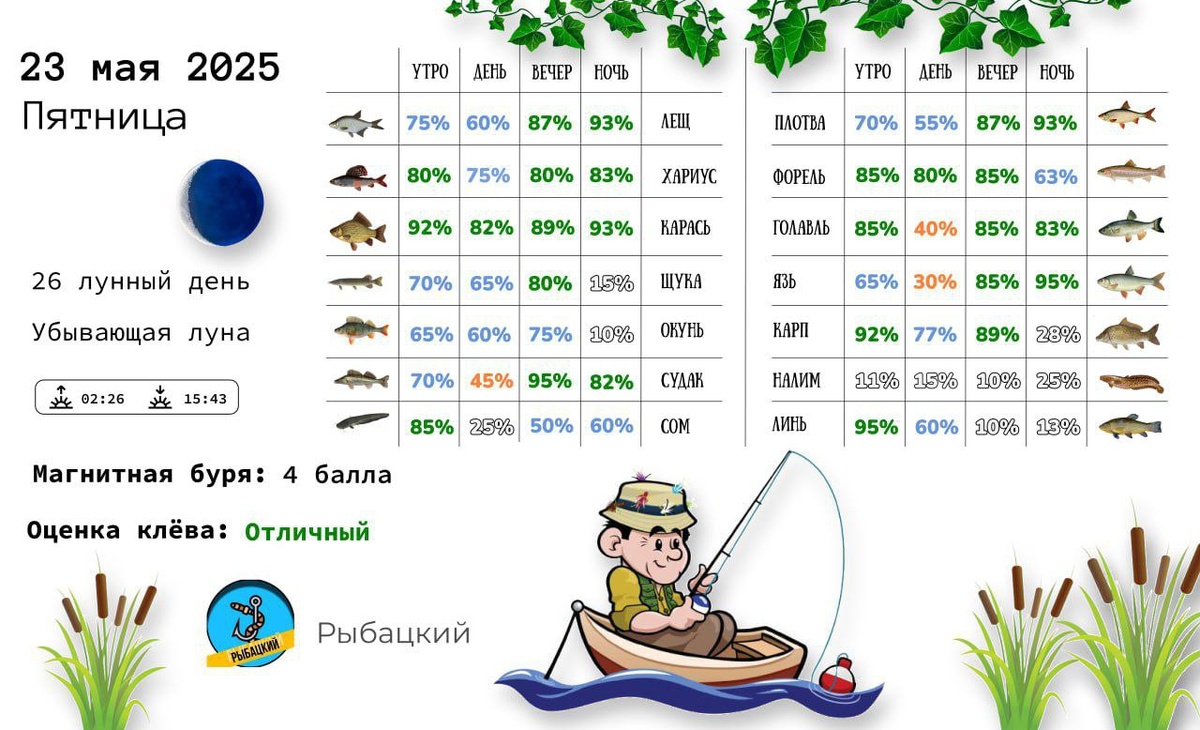 Прогноз клёва на 23 мая по фазе и состоянию луны ✅