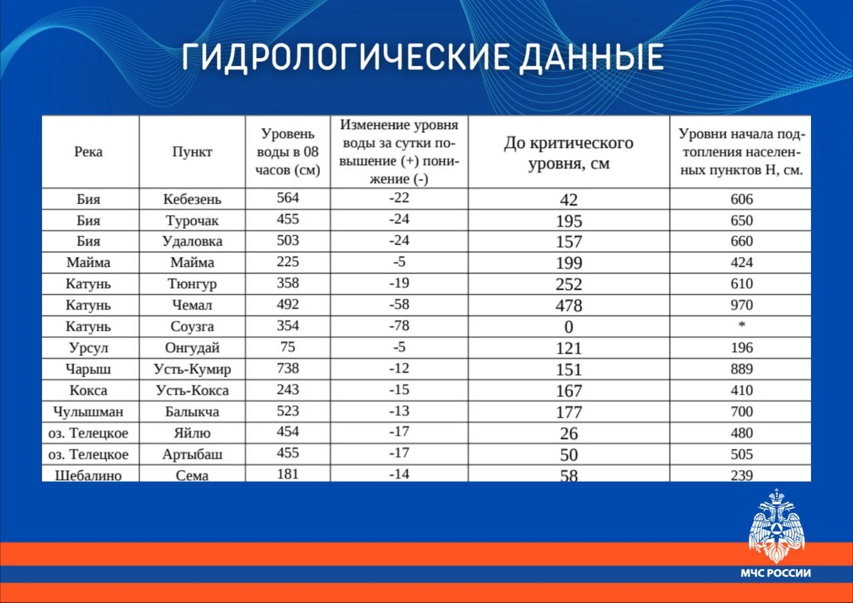 🌊Гидрологическая обстановка на водоемах Республики Алтай по состоянию на 23 мая. @04mchs