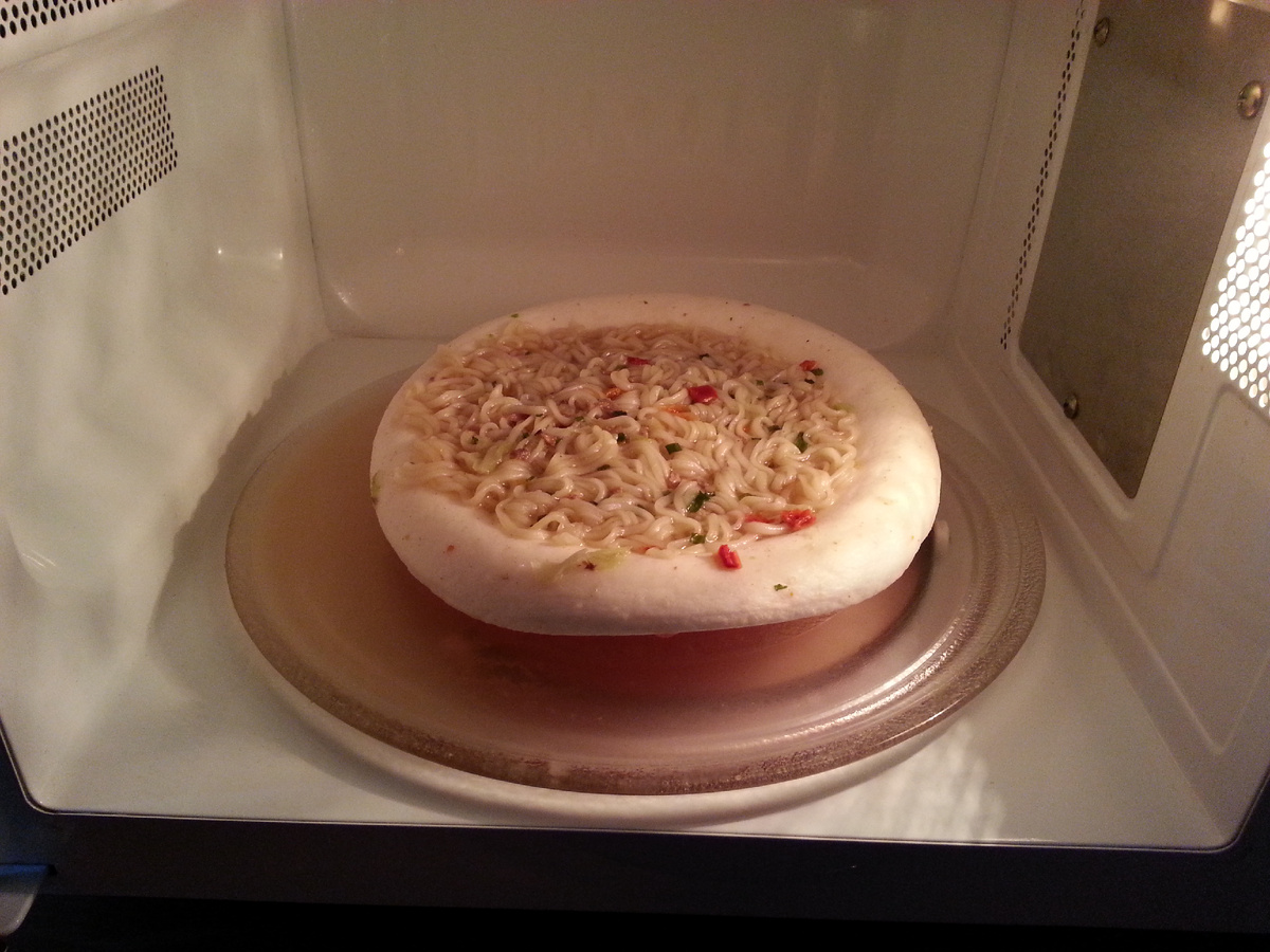 Что получится, если в микроволновку поставить лапшу