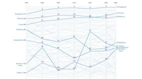 Динамика Индекса экономической сложности (ECI) для выбранных стран в 1995–2023 гг.