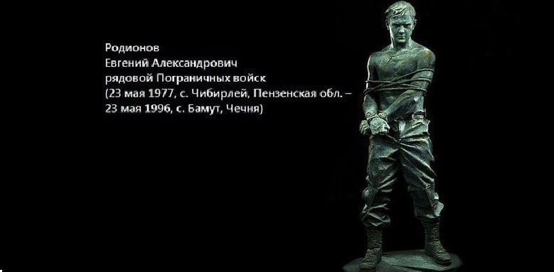 23 мая 1996 г. Подвиг рядового Пограничных войск Евгения Родионова в Чечне. Казнен в плену боевиками за то, что отказался снять крест. В тот день Жене исполнилось 19 лет. Помним. Всегда #ПамятныеДатыВоеннойИсторииОтечества #ДеньВИстории #ГодЗащитникаОтечества #80ЛетВеликойПобеды Источник: https://vk.com/wall-216215303_1905 Подпишитесь на наши группы ВКонтакте и в Одноклассниках - читайте, смотрите и комментируйте! Источник