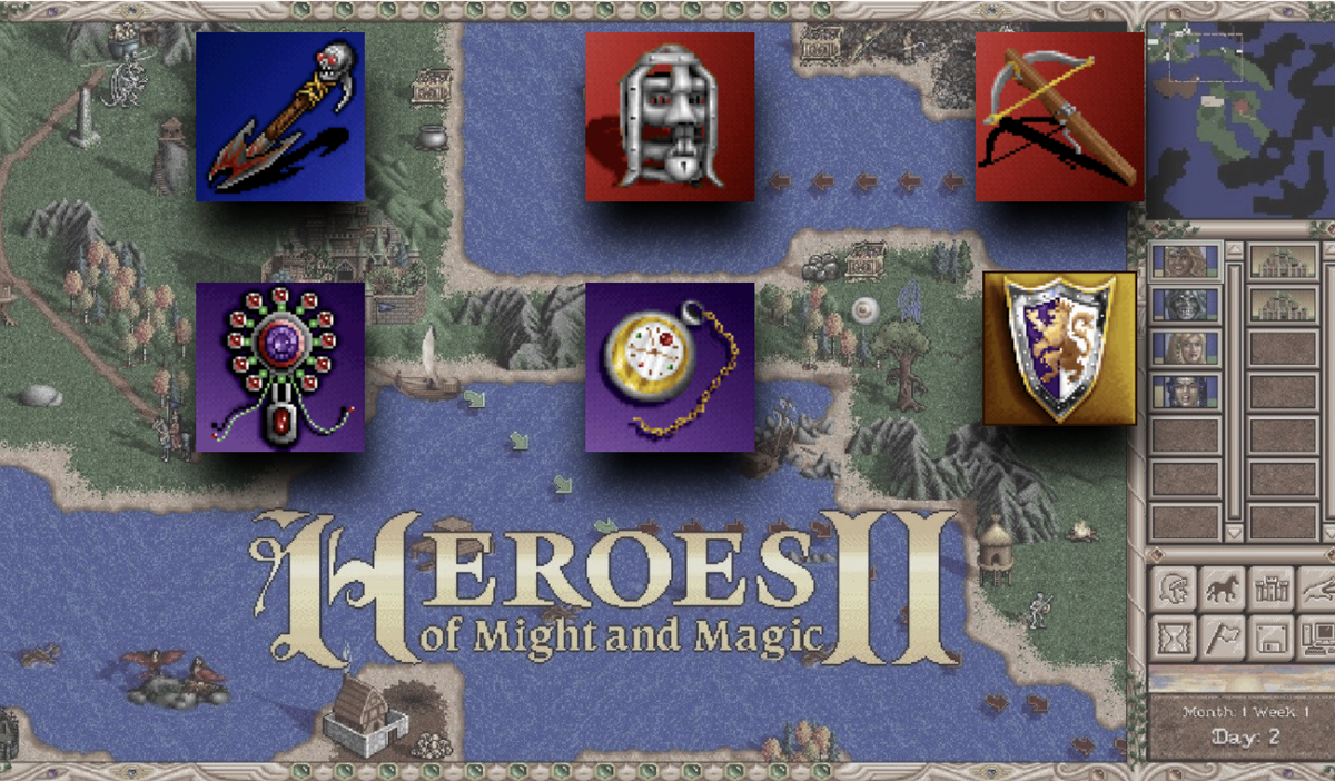 Heroes 2 - не смотри, что игра старая, но по необычным свойствам артефактов практически не уступает своему легендарному продолжению - многие артефакты были действительно уникальными, не встречающимися в Heroes 3.