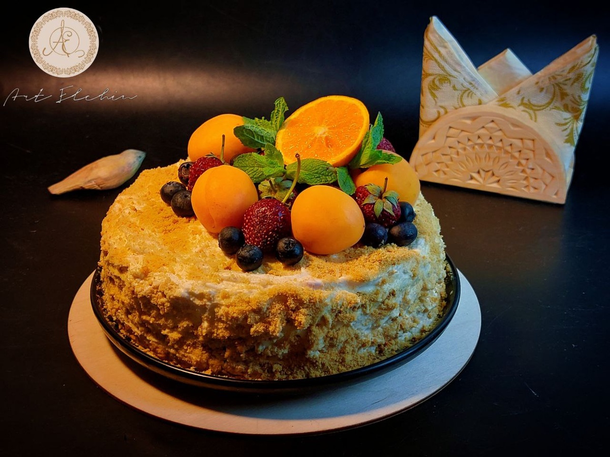 С детства мне нравился медовый торт. Раньше я делал его со сметанным кремом и с варёной сгущенкой.