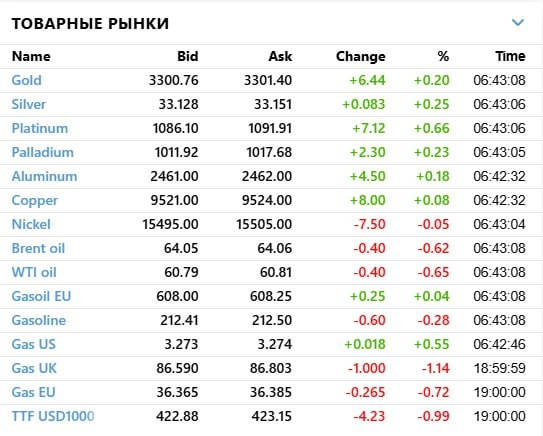 🔻Товарный рынок в плюсе кроме нефти. Нефть -0.6%