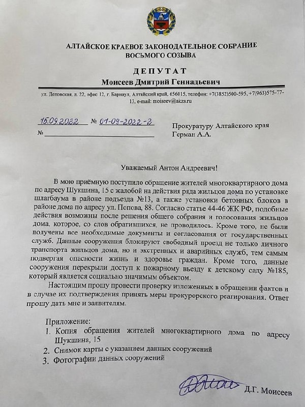 Заказные статьи против депутатов КПРФ Депутат АКЗС Дмитрий Моисеев обнаружил пост в телеграм-канале «Я живу в Барнауле | Алтай» клеветнического характера. В нем депутата обвинили в краже бетонного блока и злоупотреблении своими полномочиями! Якобы Дмитрий Моисеев, используя свой статус, забрал бетонное ограждение с дороги у дома по адресу Шукшина, 15. На самом деле жители дома обращались к депутату-коммунисту с просьбой оказать содействие и убрать бетонный блок, который был незаконно установлен. Депутат направил обращение в прокуратуру, благодаря чему проблема была решена. Дмитрий Геннадьевич связался с администрацией канала и попросил удалить фейковый пост. Однако ему отказали. Теперь депутат-коммунист намерен разрешать ситуацию через суд. Примечательно, что клеветнический пост появился в телеграм-канале еще несколько лет назад - как раз в то время, когда депутат КПРФ продвигал в краевом парламенте законопроект, расширяющий возможности использования фонда капитального ремонта в ин