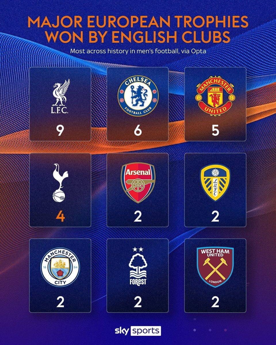 Рейтинг английских клубов по количеству трофеев на европейской арене 📊