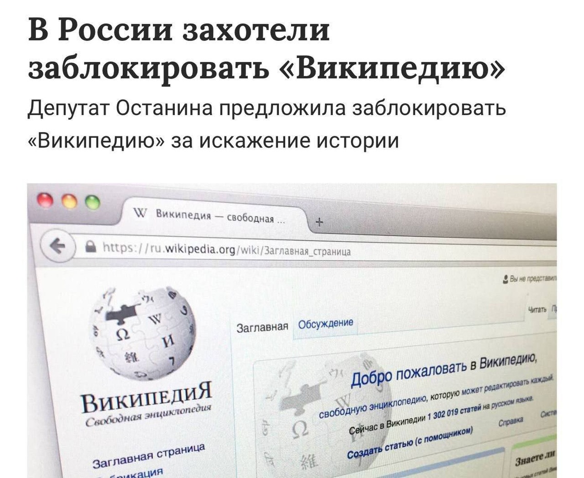 Госдума хочет полностью заблокировать «Википедию». Причины — повальное искажение исторической правды, отсутствие возрастного ценза и фейки.