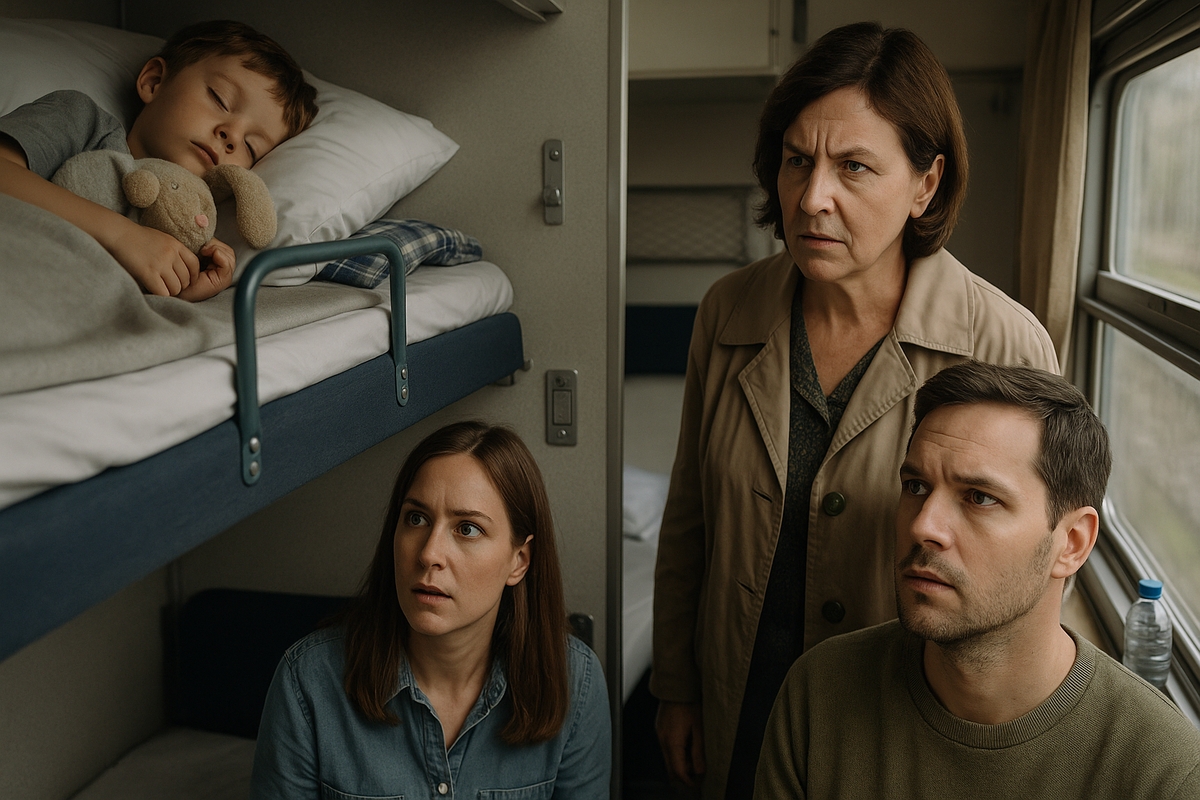 Они снова собрались в поездку — теперь в другой город, на день рождения крестной. Билеты были куплены заранее: на двоих взрослых и ребёнка, как и в прошлый раз. Когда они вошли в купе, сначала ничего не предвещало странностей — они расположились, разложили вещи, малыш играл у окна. Но спустя полчаса дверь купе отворилась, и на пороге появилась… та самая женщина.