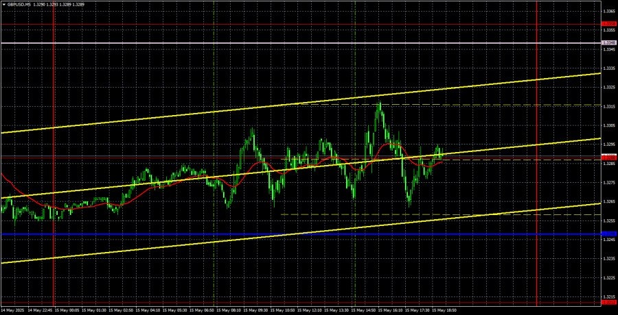 Валютная пара GBP/USD в четверг торговалась исключительно вбок и с невысокой волатильностью. Несмотря на обилие макроэкономических событий, рынок большую их часть проигнорировал, как и прогнозировалось вчера. В Великобритании отчет по ВВП оказался достаточно позитивным в первом квартале, показав рост на 0,7%, однако в то же время отчет по промышленному производству оказался слабее прогнозов, поэтому роста британской валюты не случилось. Впрочем, мы бы не ждали сильной реакции рынка, если бы даже оба отчета оказались сильными или слабыми. Что касается американских отчетов, то их даже рассматривать не имеет смысла – рынок их проигнорировал.