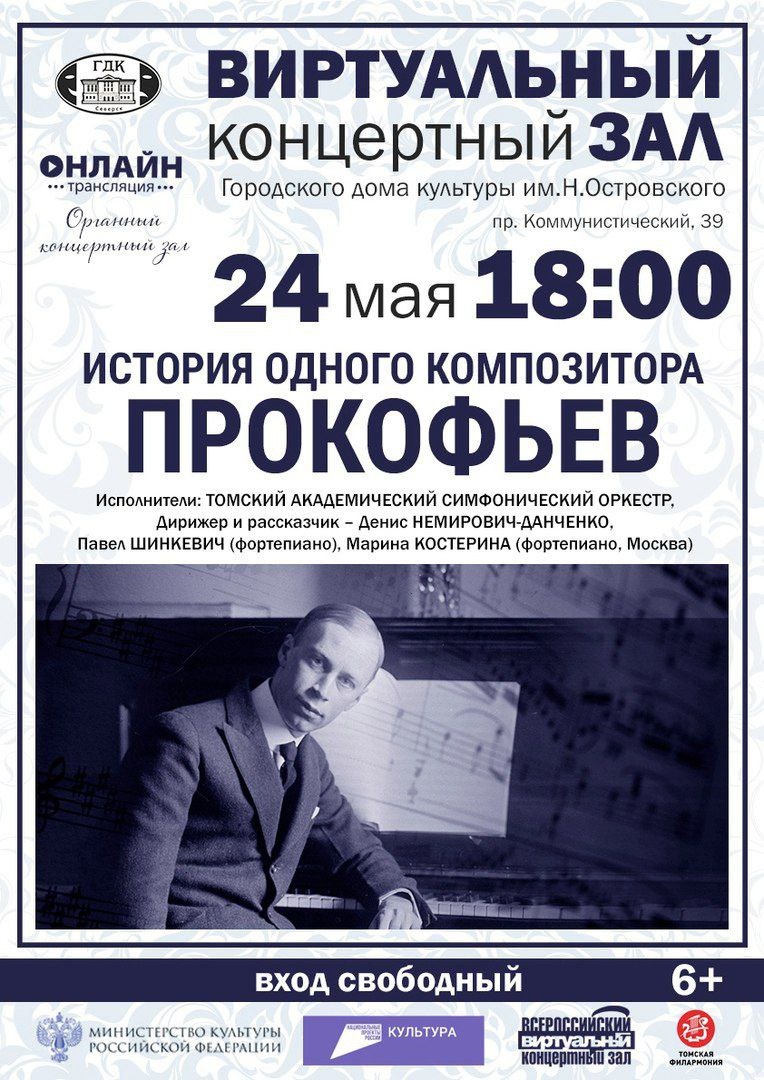 Концерт «История одного композитора. Прокофьев» 24 мая в 18:00 в виртуальном концертном зале пройдет трансляция из Органного концертного зала Томской филармонии. В музыке Сергея Прокофьева звучит яркое, теплое и веселое солнце — именно так его описывали современники. Его «Классическая» симфония наполнена светом и радостью, несмотря на бурные времена, когда она была написана летом 1917 года. Когда по улицам шли шеренги военных, а слышались оружейные выстрелы, Прокофьев уехал из революционного Петрограда в пригород, забрав с собой только что купленный телескоп. Не имея рояля под рукой, он творил, наблюдая за звездами, и вдохновлялся трудом Шопенгауэра, который учил считать счастьем отсутствие печали. В своих произведениях композитор запечатлел солнечное и ясное настроение. #СеверскАфиша