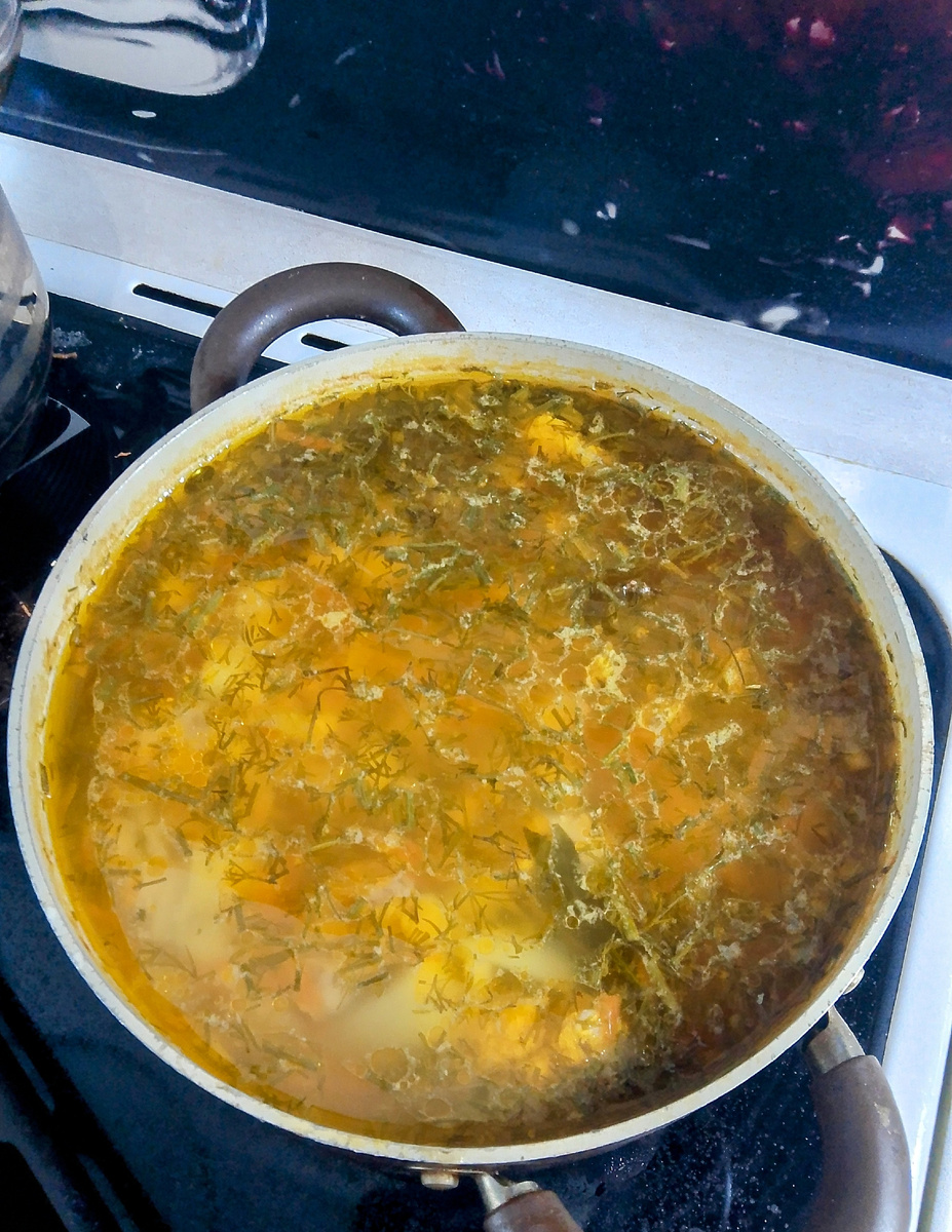 Четверг 15 мая Утро у меня началось с претензией к мужу, почему не разбудил как сам встал, для меня очень ценно утренние время провести без детей, несколько утренних минут тишины и спокойствия дают мне заряд силы на весь день, я уже с нетерпением жду времени когда утром будет тепло и с кружкой кофе можно будет выйти на утреннее солнышко на свежий воздух. Ладно что теперь поспала подольше, надо наверстывать, быстро сварила детям манную кашу и сразу начала готовить обед и частично ужин. Что приготовила детям лёгкий суп с вермишелью Взрослым приготовила окрошку, такой спорный для всех продукт кто то любит а кто то нет у меня свой рецепт который у нас в семье готовиться очень длительное время Окрошка в этот день зашла прям в тему погода на улице была довольно теплая, и освежиться холодным супчиком самое то На второе в холодильнике была ещё жаренные куриные бедра, на выбор семье приготовила небольшие тефтели в духовке Тефтели в нашем понимании это мясо и немного риса, со вкусной подлив