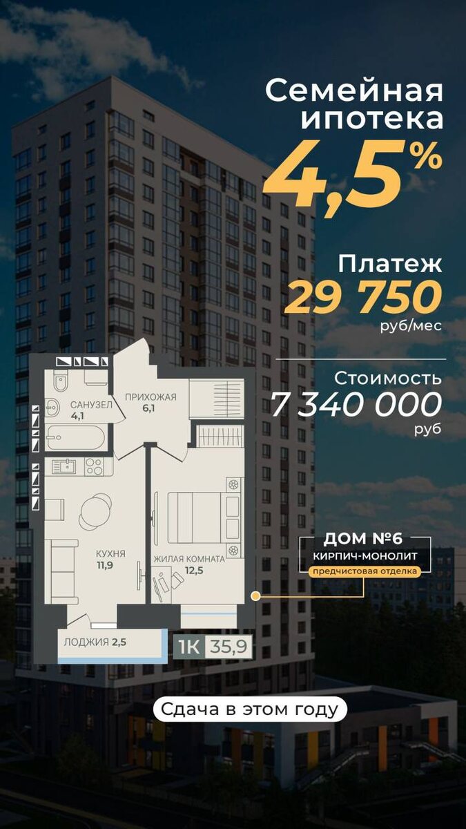 π₯Π‘Π΅ΠΌΠ΅ΠΉΠ½Π°Ρ ΠΈΠΏΠΎΡΠ΅ΠΊΠ° 4,5% Π½Π° Π²Π΅ΡΡ ΡΡΠΎΠΊ Π² ΠΠ Π² ΠΠΊΡΡΠ±ΡΡΡΠΊΠΎΠΌ ΡΠ°ΠΉΠΎΠ½Π΅β¨ Π ΠΏΡΠΎΠ΄Π°ΠΆΠ΅ ΠΎΠ΄Π½ΠΎΠΊΠΎΠΌΠ½Π°ΡΠ½Π°Ρ ΠΊΠ²Π°ΡΡΠΈΡΠ° Ρ ΠΏΡΠ΅Π΄ΡΠΈΡΡΠΎΠ²ΠΎΠΉ ΠΎΡΠ΄Π΅Π»ΠΊΠΎΠΉβ¨ - 1Π- 35.9 ΠΌΒ² - ΠΠΎΡΠΎΠ»ΠΊΠΈ 2,85 ΠΌΠ΅ΡΡΠ° - ΠΠΈΠ΄ΠΎΠ²ΠΎΠΉ 22 ΡΡΠ°ΠΆ β