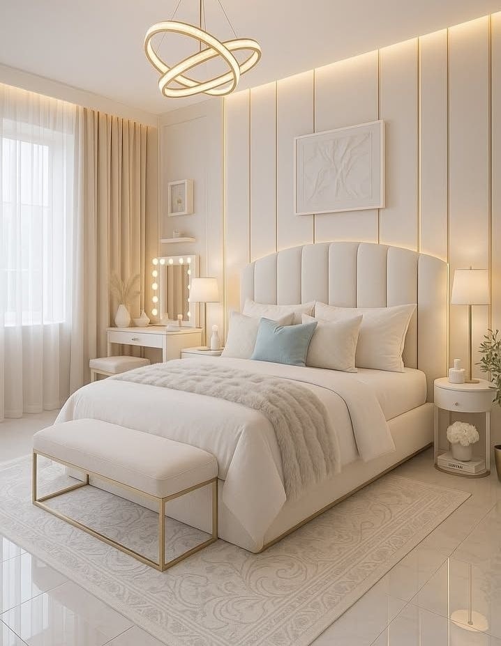 Она не просто наполняет пространство — она задаёт его ритм, превращая спальню в место восстановления, тишины и внутреннего равновесия.
