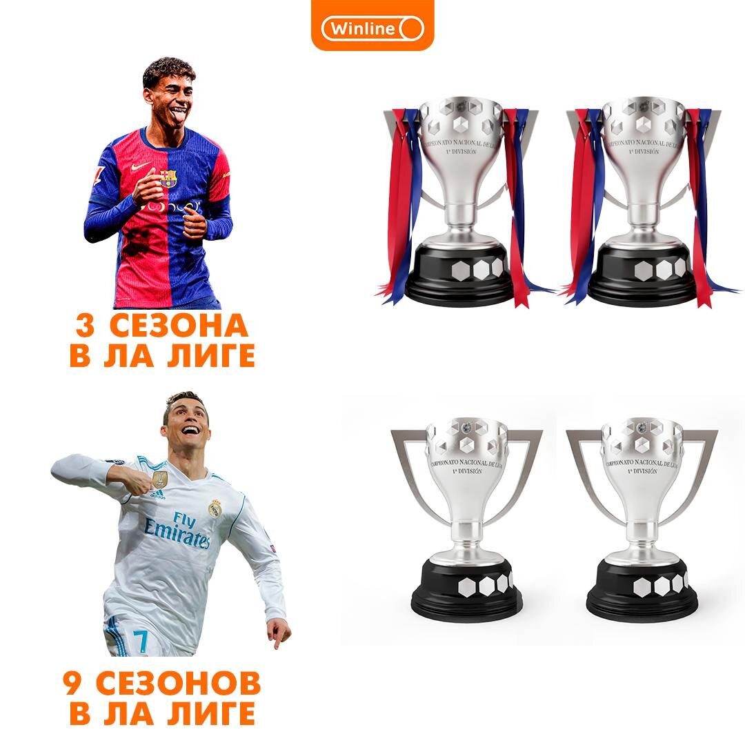 У Ламина Ямаля к 17 годам столько же титулов Ла Лиги, сколько у Роналду за всю карьеру в Испании