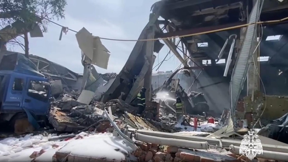 Открытое горение на месте происшествия в Салавате ликвидировано, ведется разбор завалов. Об этом сообщил заместитель начальника центра управления в кризисных ситуациях Главного управления МЧС России по РБ Вадим Илалов. По его словам, предварительно из-за сбоя в технологическом процессе в цехе разгерметизировалась печь, что спровоцировало обрушение здания и пожар. Возможно, один человек остался под завалом. Сейчас принимается все меры для поиска его. Три человека госпитализированы, они в тяжелом состоянии. По данным МЧС Башкортостана, открытое горение ликвидировано. Для этого привлечены из личного состава 49 человек и 20 единиц техники. Фото: МЧС по РБ.