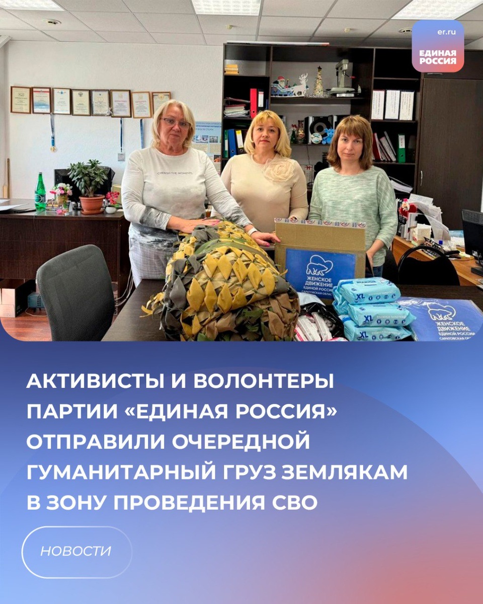 🙏🏼Всесторонняя поддержка участников специальной военной операции -приоритетное направление народной программы партии «Единая Россия». Активисты партийного проекта «Женское движение Единой России», сотрудницы спортивной школы олимпийского резерва «Надежда Губернии» собрали очередную гуманитарную помощь для участников специальной военной операции. Груз, включающий в себя лекарства, канцтовары, сухой душ, влажные салфетки будет доставлен Боевым братством. Также передали маскировочную сеть на Запорожское направление для штурмовиков. 💬«Мы стараемся отправлять гуманитарную помощь для военнослужащих и верим, что наша поддержка прибавит сил бойцам. Конечно, мы и дальше будем продолжать помогать военнослужащим, будем создавать надежный тыл, делать все возможное, чтобы приблизить долгожданную Победу», - поделилась активистка партийного проекта «Женское движение Единой России» Мария Хасанова. Материалы для маскировочных сетей предоставлены проектом «Женское движение Единой России» при подд