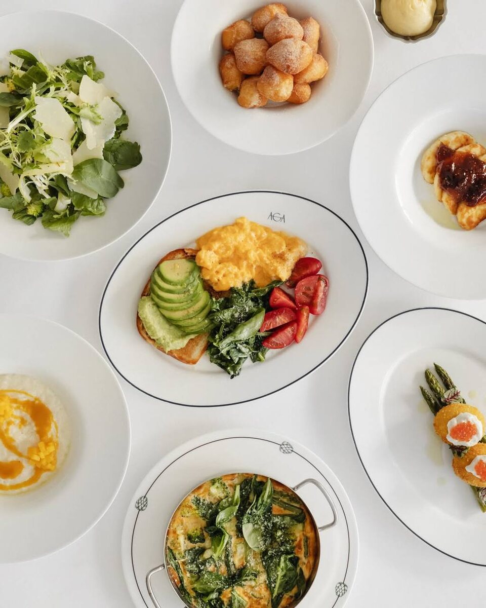 #Петербург #Завтрак В ресторане AGA обновили меню завтраков — собрали все, чтобы неотразимо начать день: •Фирменный завтрак AGA с лососем или прошутто котто, который подают с овощами и хлебной корзиной (2400₽); •Яйца Миланезе — во фритюре, с зеленой спаржей и красной икрой (1300₽); •Драники из кабачков с лососем и сметаной (1100₽). Завтраки готовят ежедневно — с 10:00 до 12:00 по будням и с 10:00 до 14:00 по выходным. Просп. Добролюбова, 16к2
