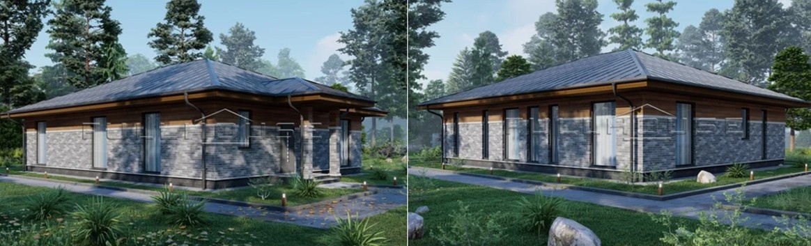 Комфортабельность загородного дома зависит от его планировки и архитектуры, которые хоть и ориентированы на разумную экономию, всё же повышают уровень бытового удобства в повседневной жизни. При правильно распланированном пространстве одноэтажный дом 147 м2, как в проекте FullMaster Sana, гораздо комфортнее двухэтажки площадью 200 м2 с теми же четырьмя спальнями. Современная норма комфортного жилья на взрослого человека составляет 30 м2 (на ребёнка вдвое меньше) – соответственно, для семьи с тремя детьми 147 м2 более чем достаточно. В хорошем проекте под жилые комнаты (в том числе гостиную) отводится не менее 70% от общей площади, а доля транзитных зон должна составлять не более 10%. Остальное отводится под вспомогательные помещения, ведь именно они и обеспечивают жильцам бытовой комфорт. В проекте FullMaster Sana хозяйская спальня оснащена индивидуальной гардеробной и ванной, а в санузле общего пользования имеется сауна. Два санузла в частном доме – это вовсе не роскошь, а необходимо