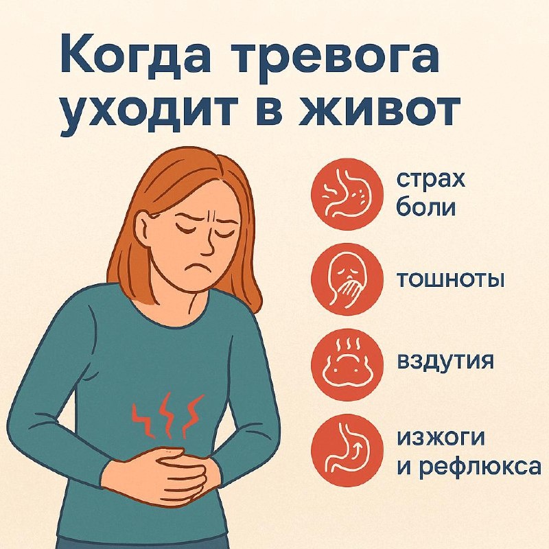 🤢 Когда тревога уходит в живот: страх боли, тошноты, вздутия, изжоги и рефлюкса